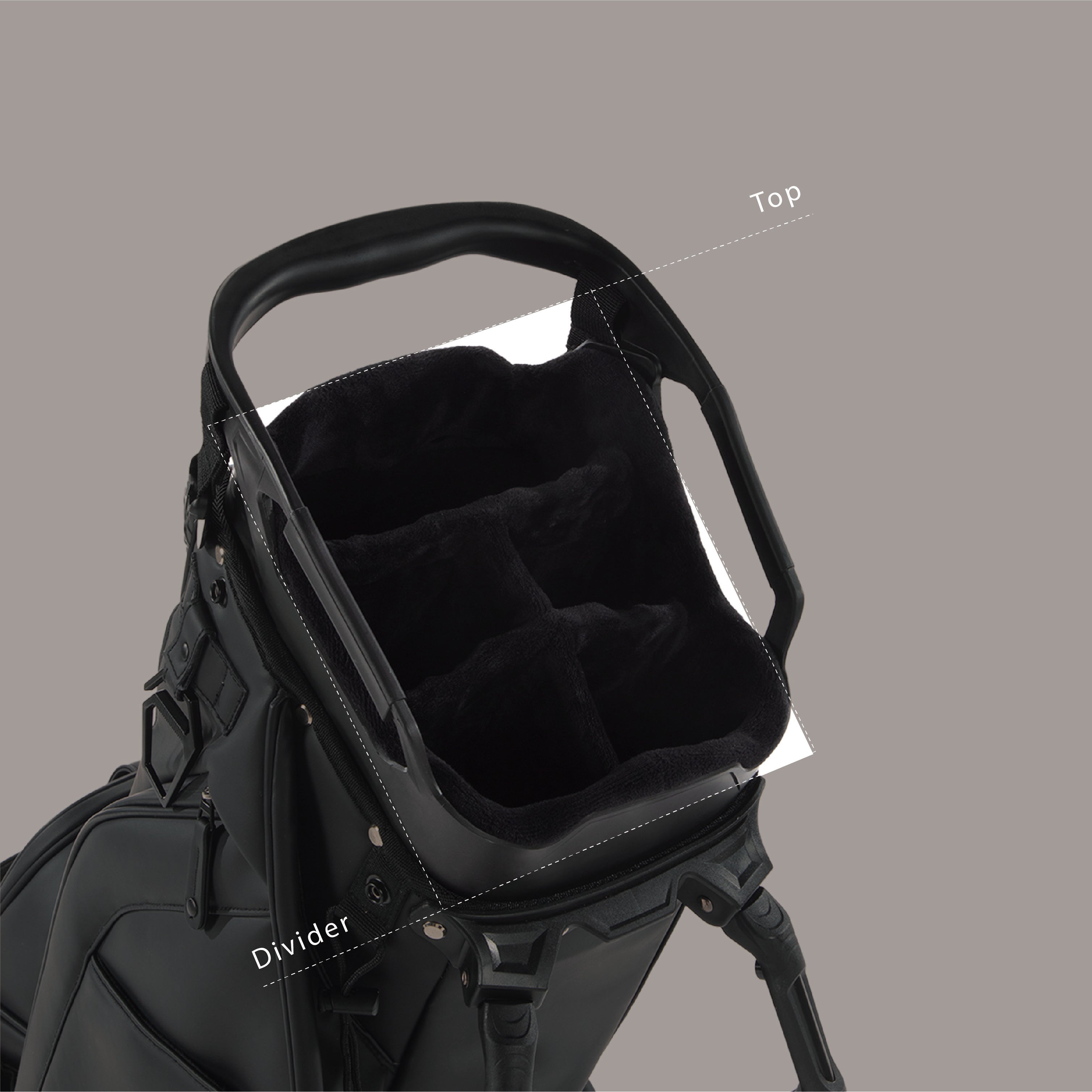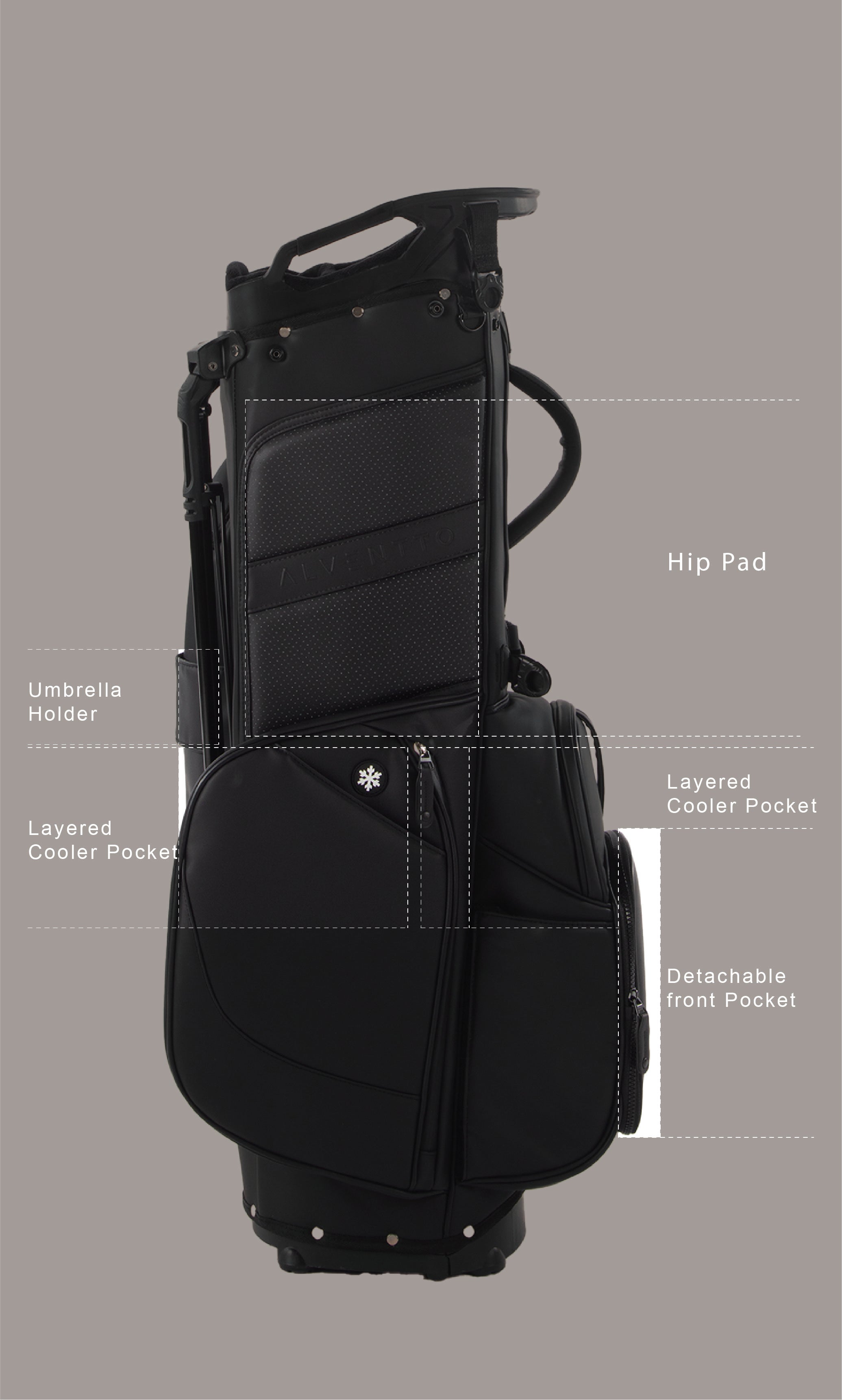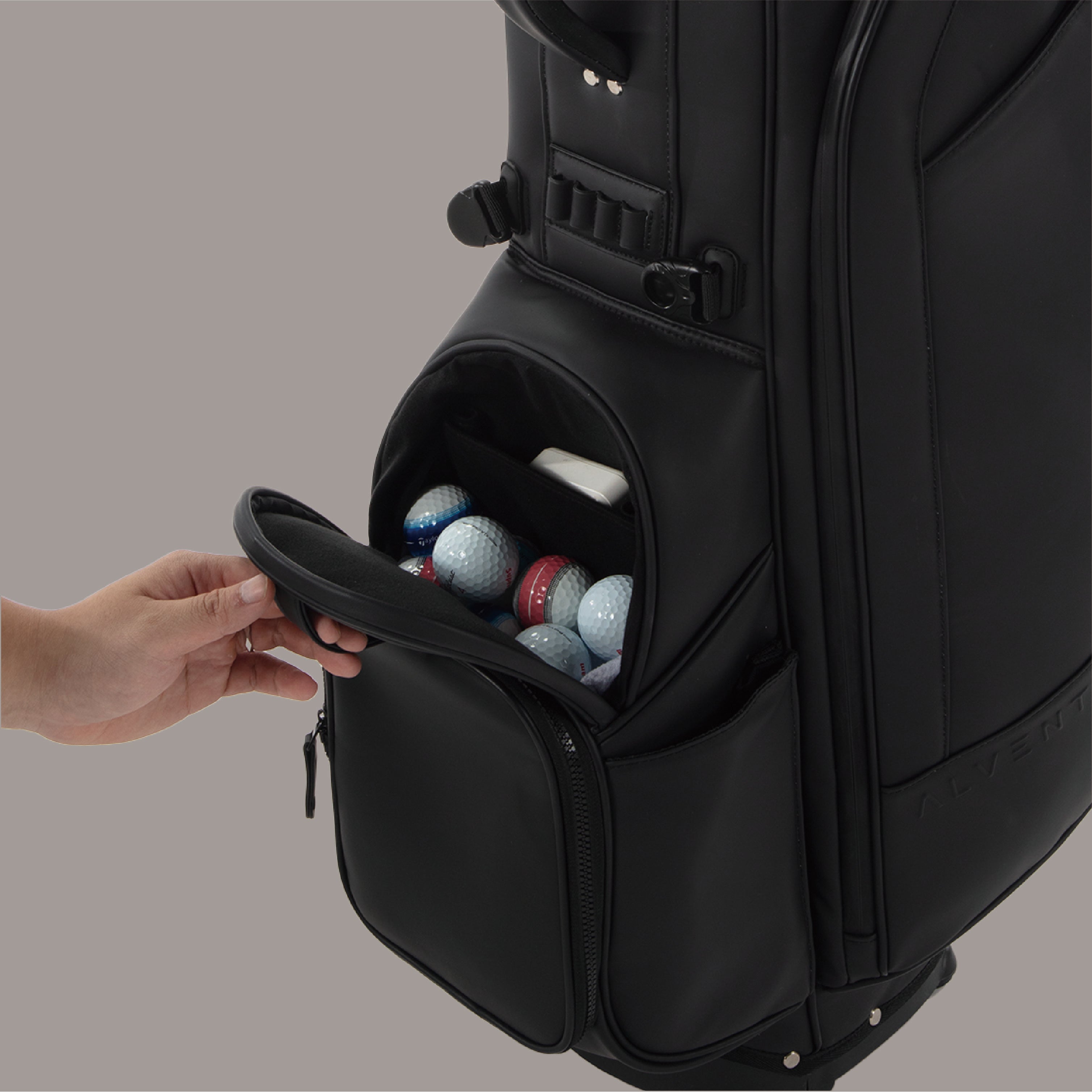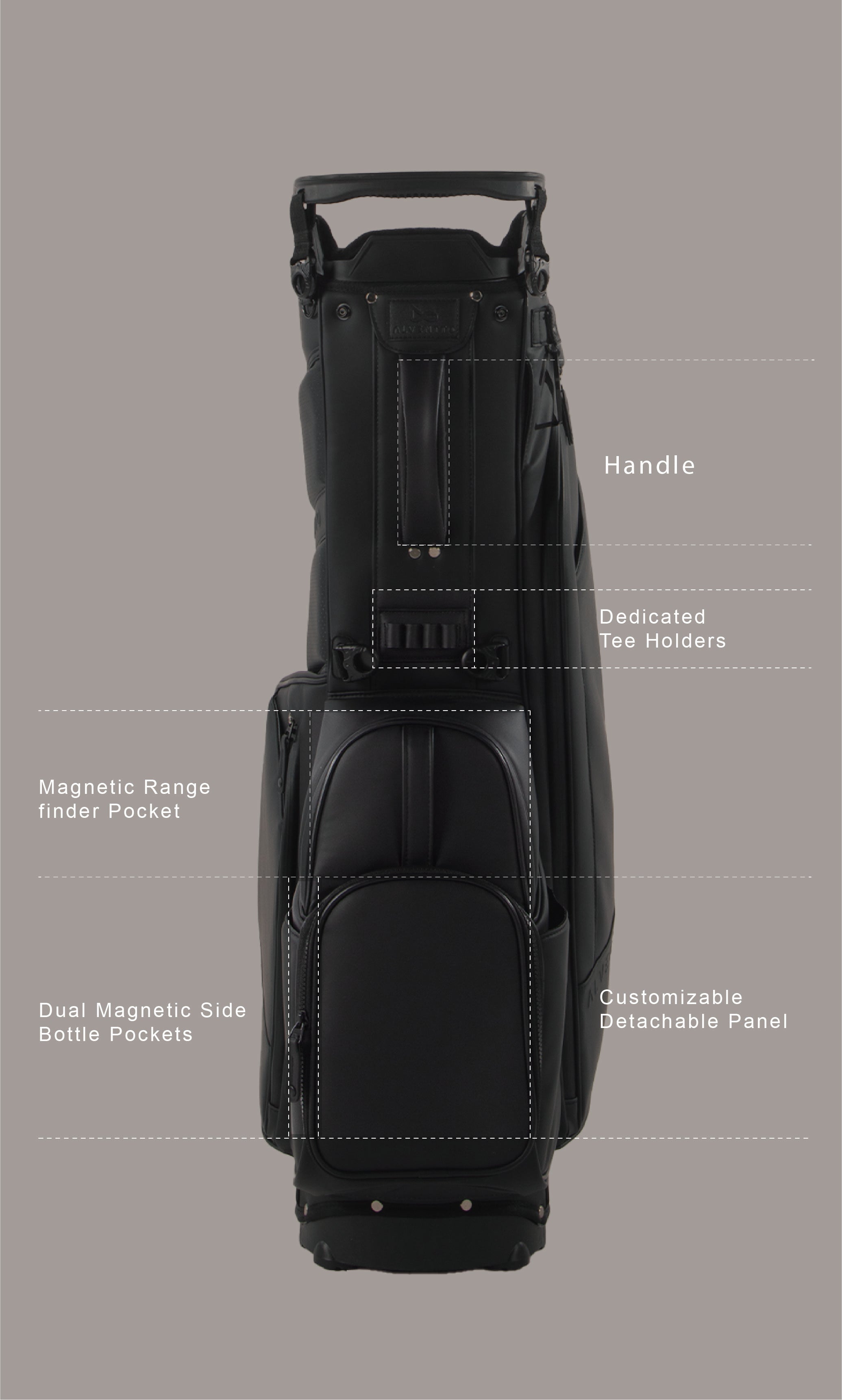 The Midnight black golf stand bag embodies quiet strength and timeless elegance. Crafted in sleek black from Alventto’s Holiday Collection, it reflects understated luxury and calm confidence.