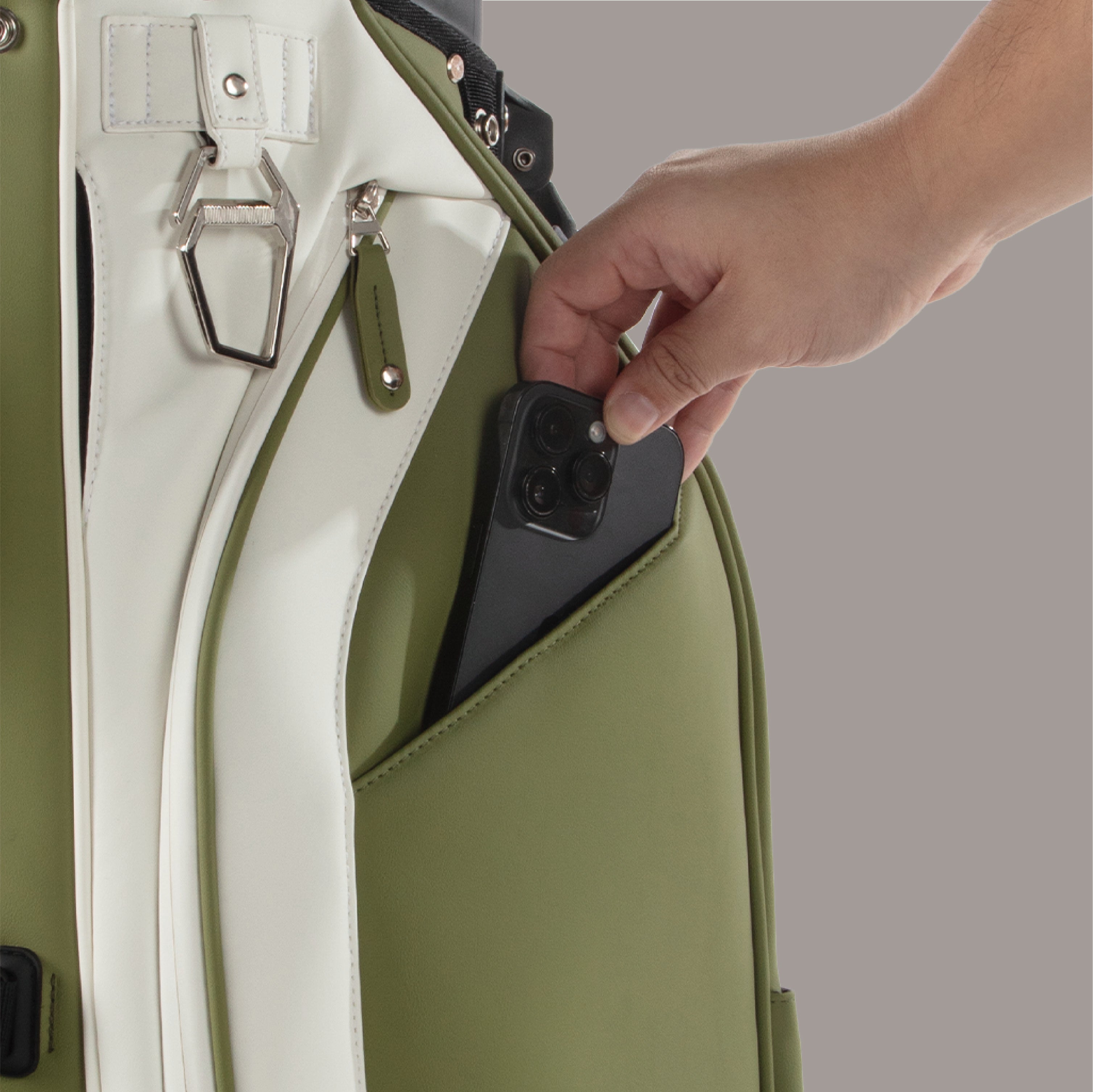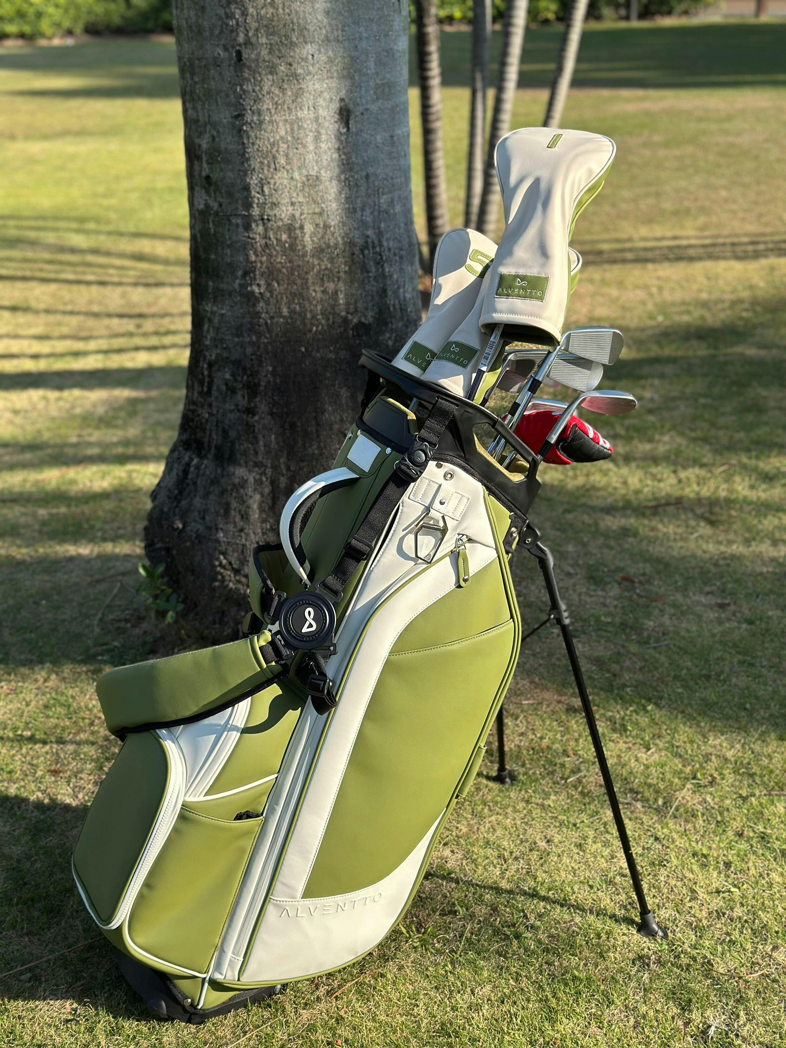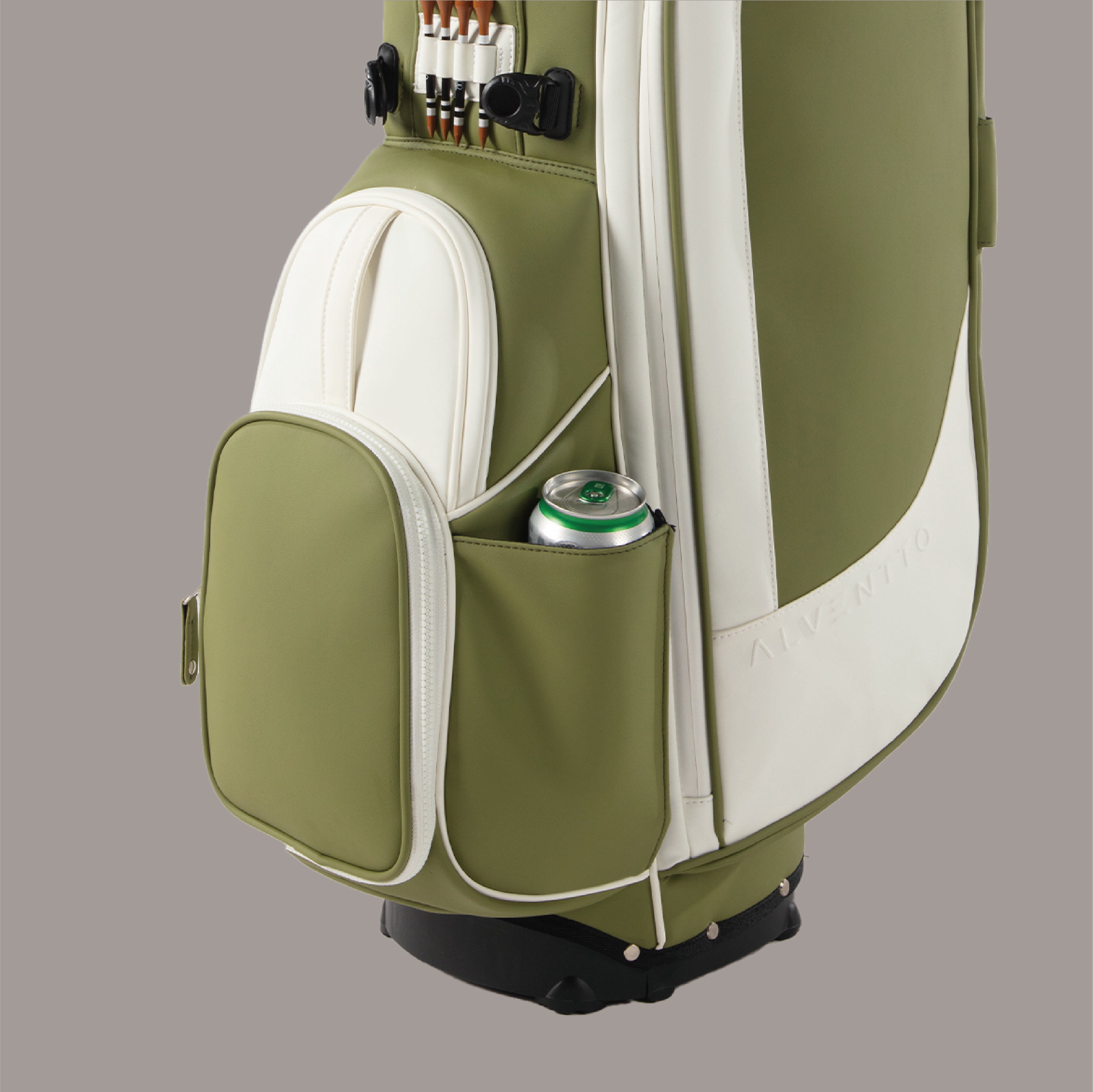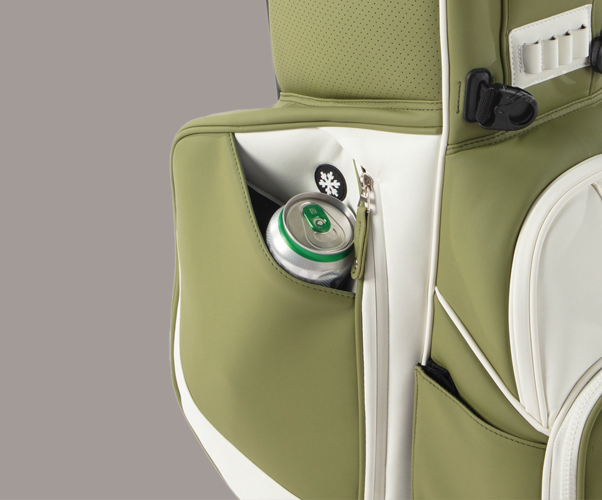 Inspired by calm natural tones, the Pistachio green golf bag blends soft moss green with ivory for a fresh, refined look. Lightweight and thoughtfully designed, it delivers quiet confidence on every round.