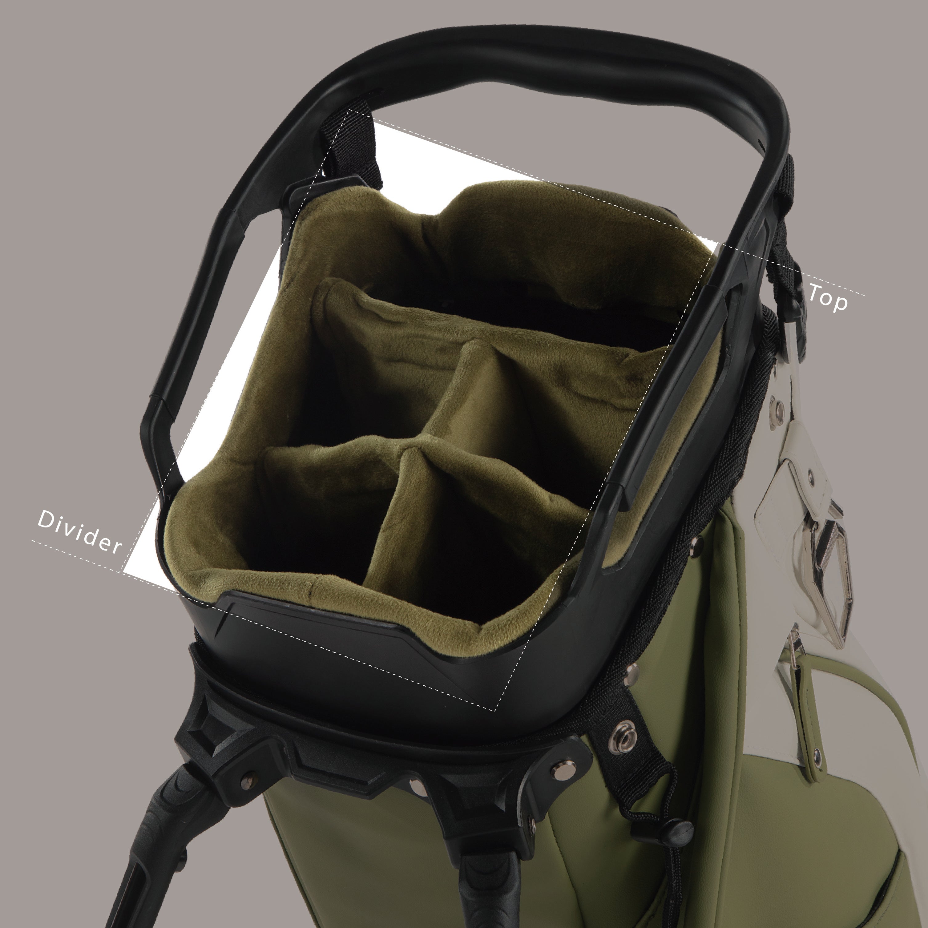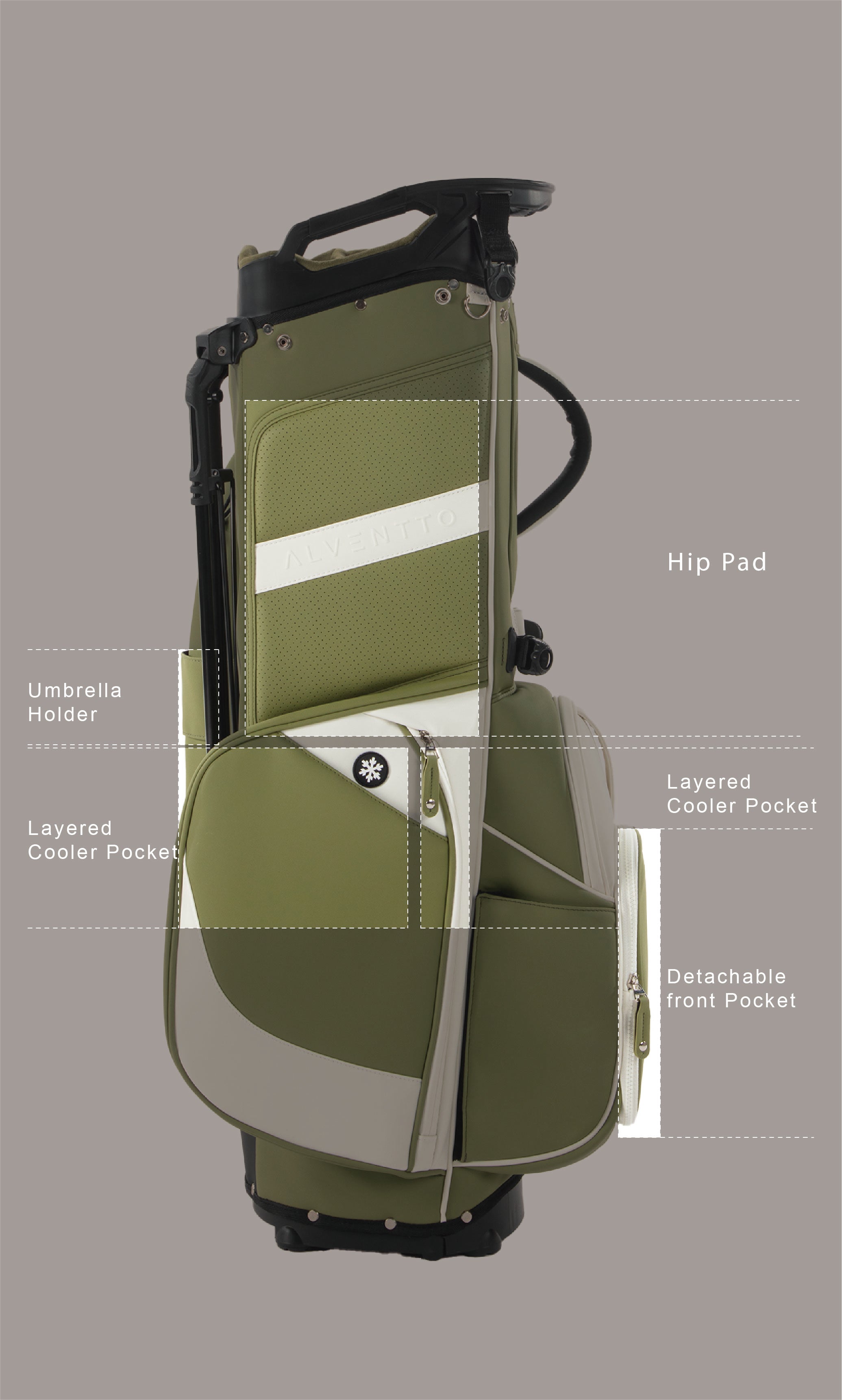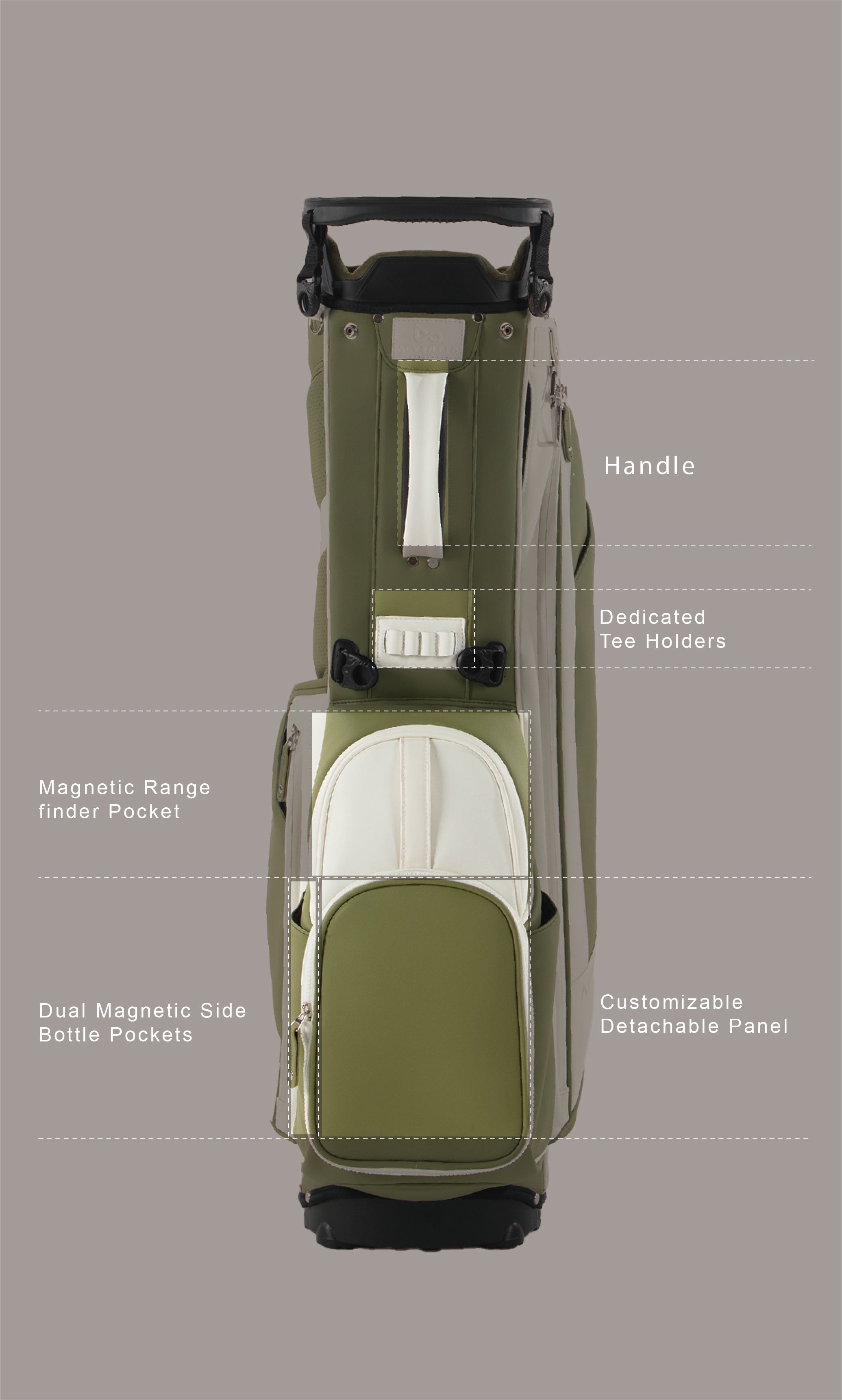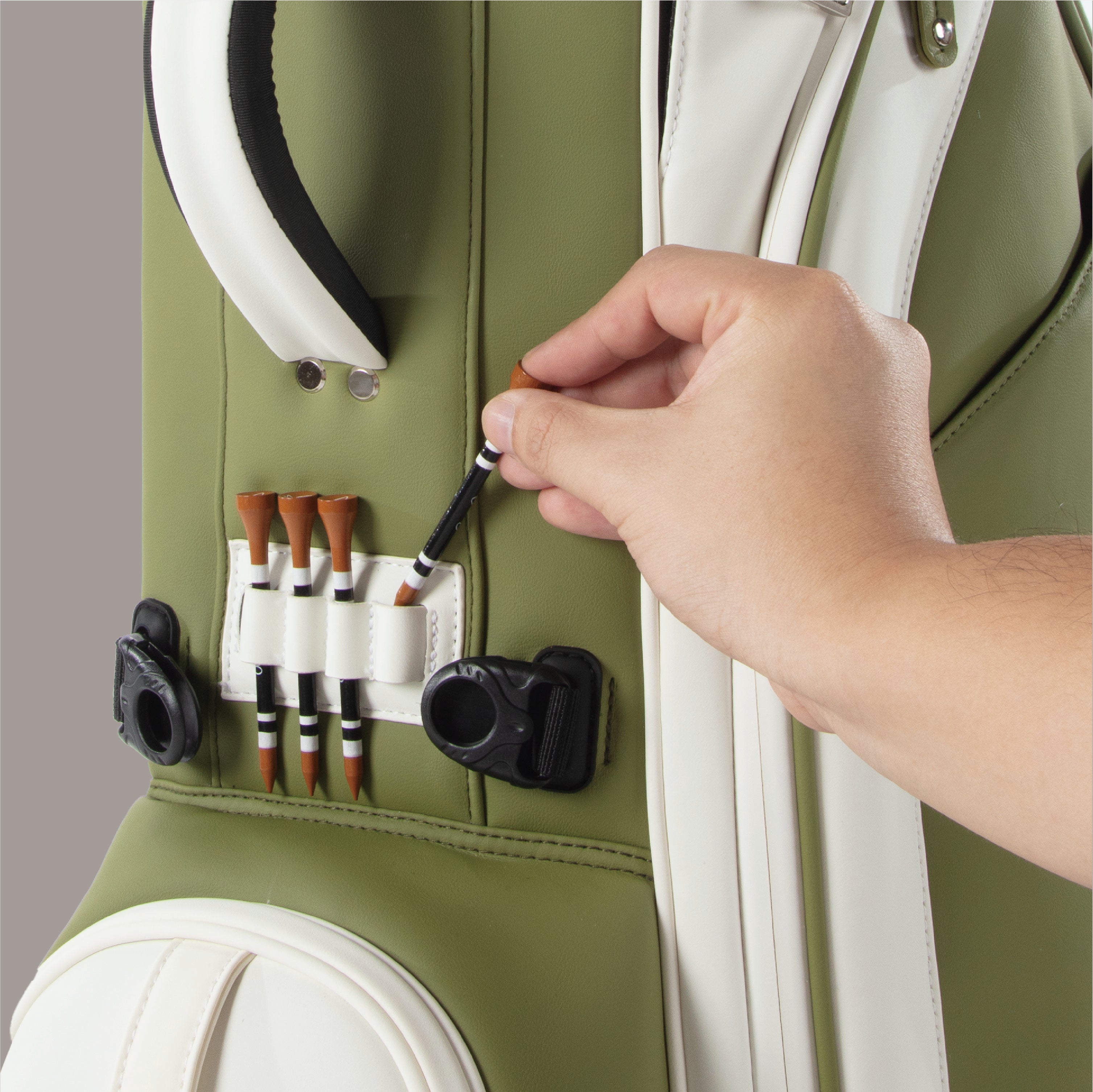 Inspired by calm natural tones, the Pistachio green golf bag blends soft moss green with ivory for a fresh, refined look. Lightweight and thoughtfully designed, it delivers quiet confidence on every round.