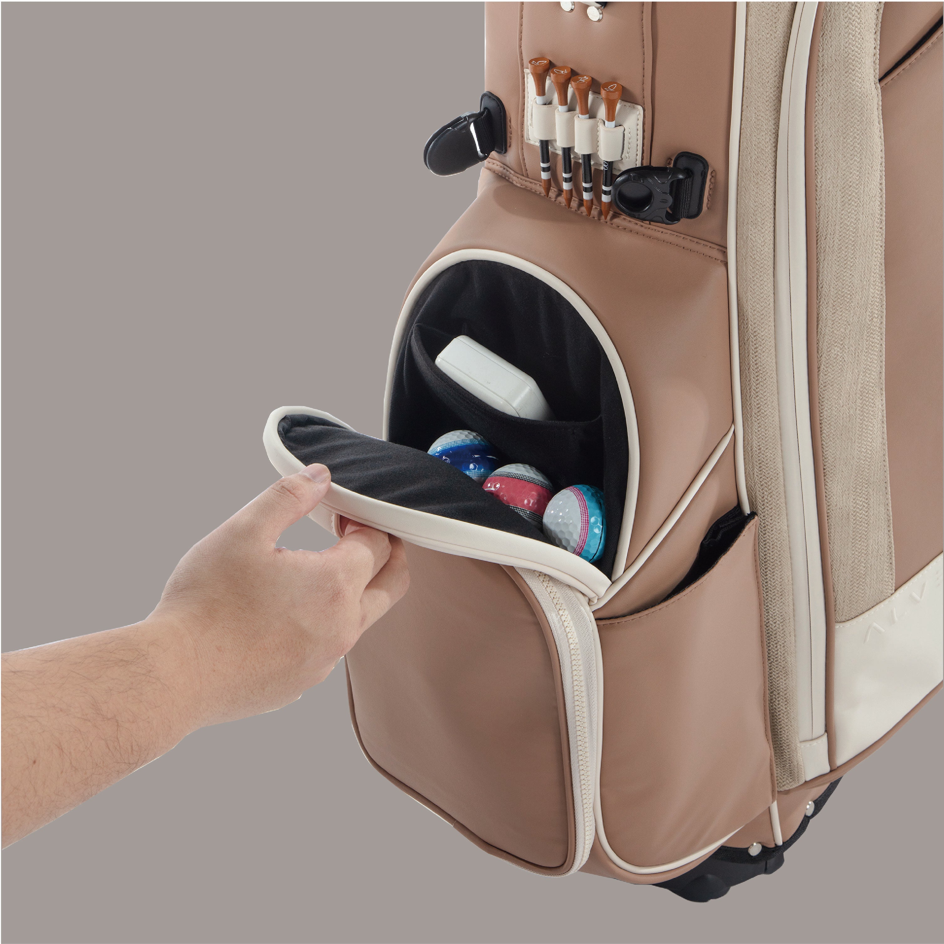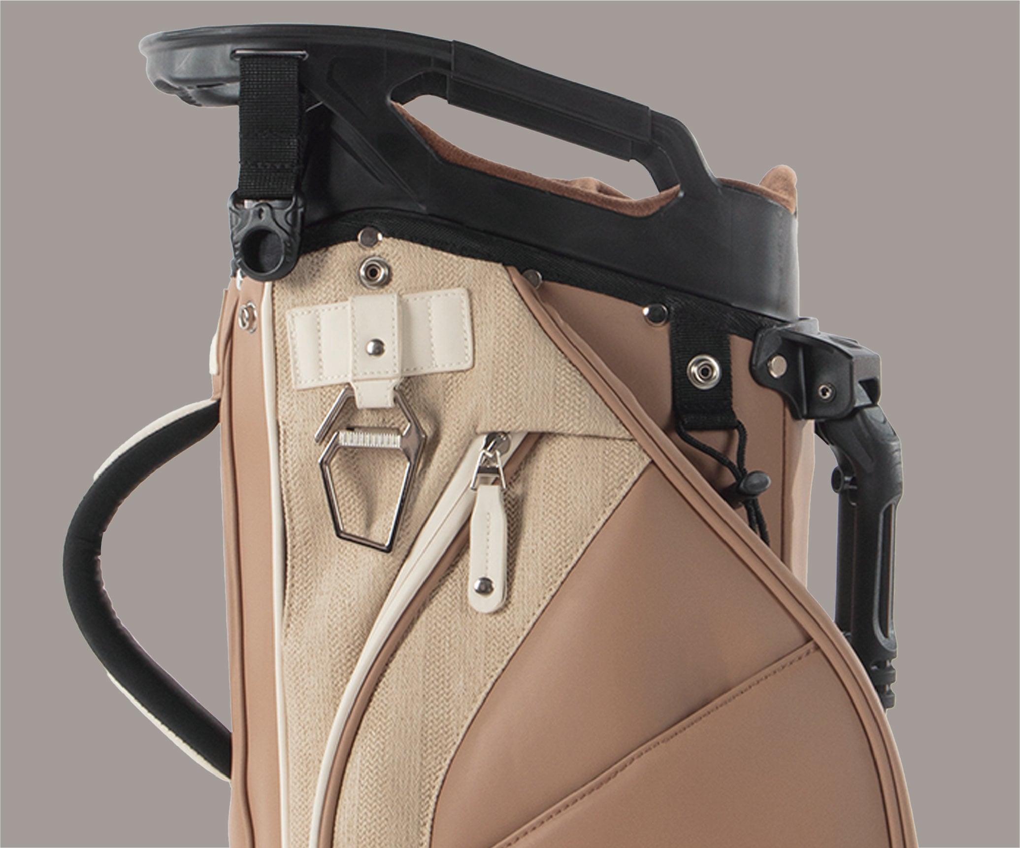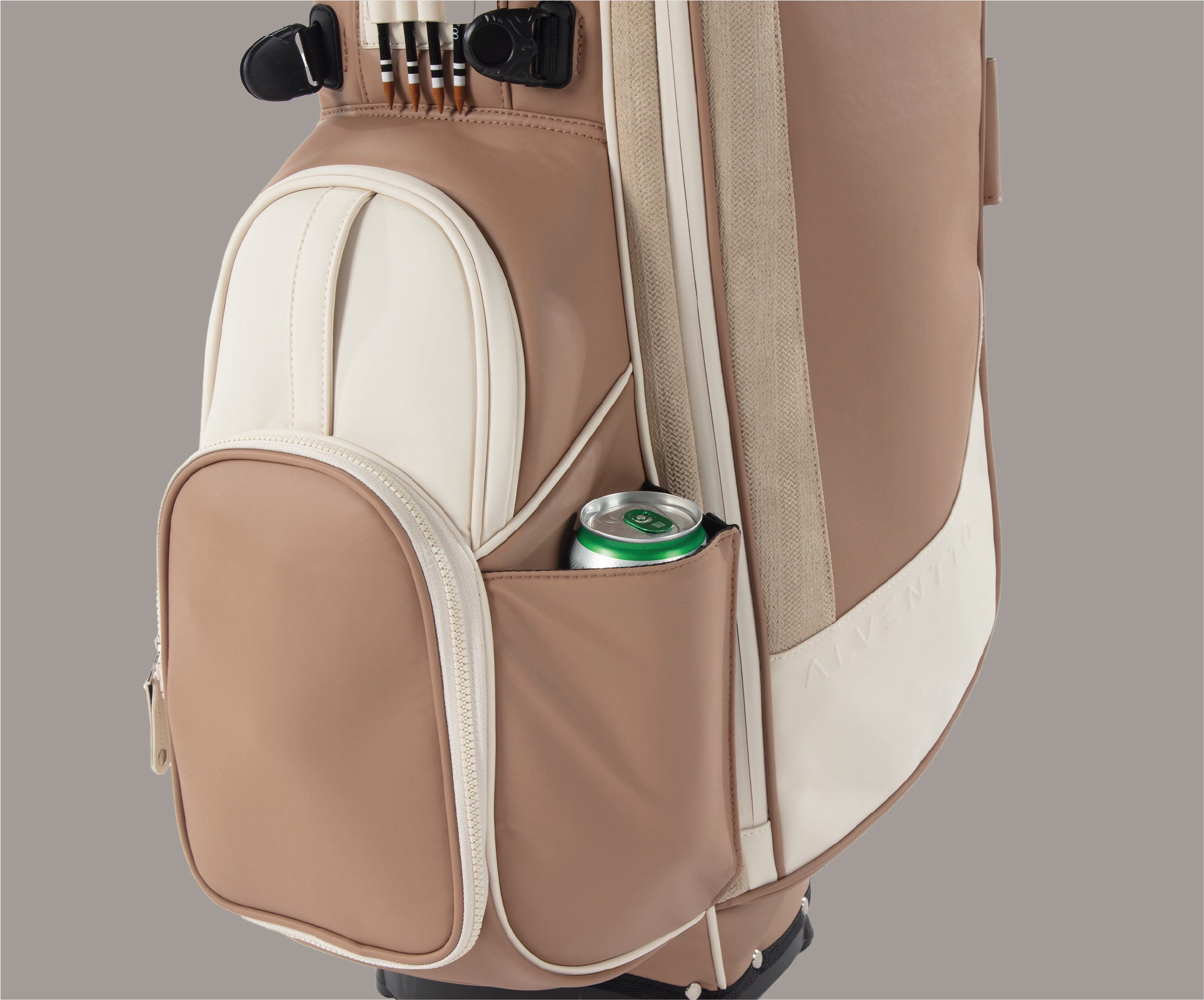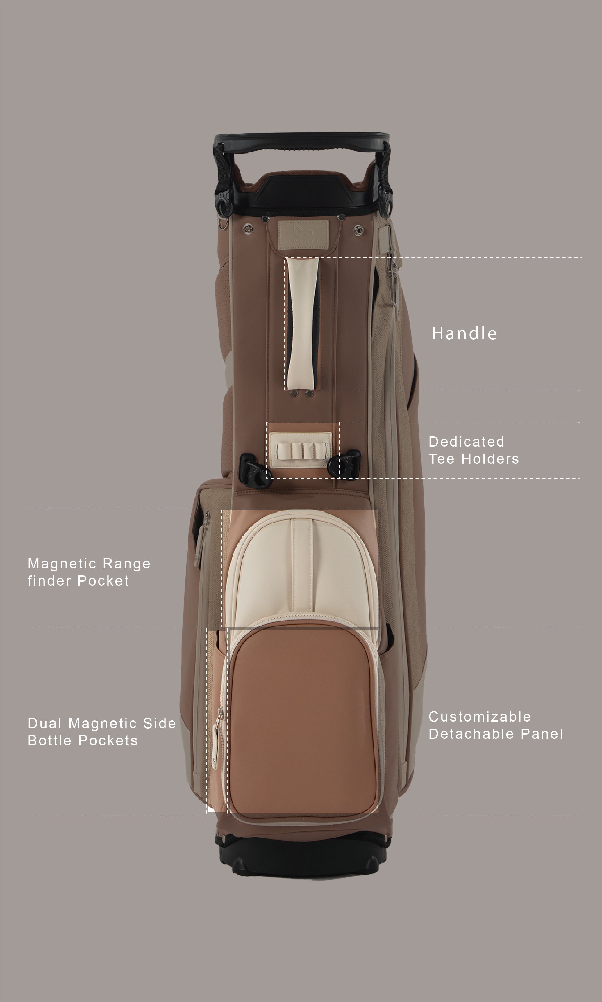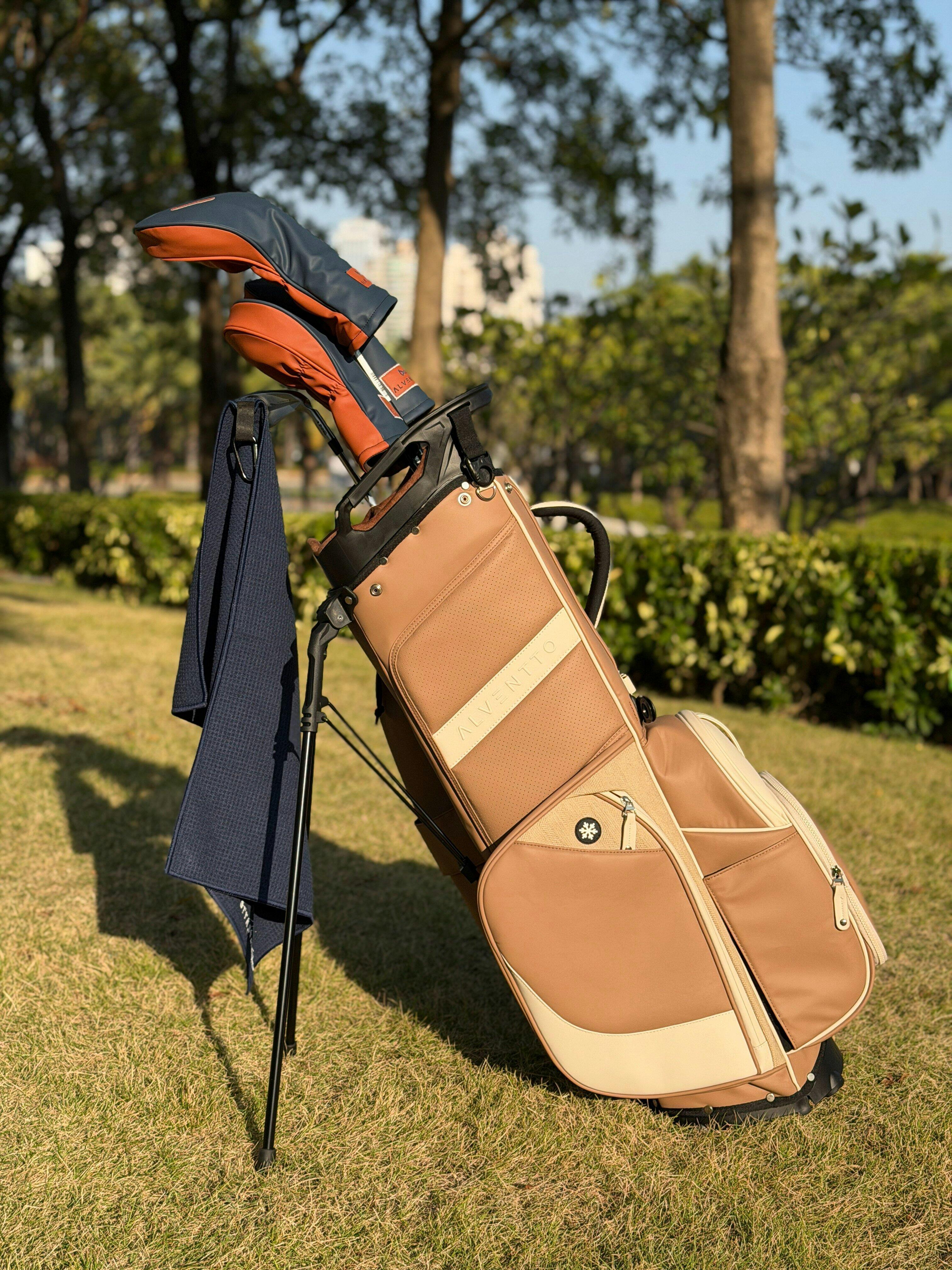 Inspired by the calm beauty of desert canyons at sunset, Sandstone blends warm Mocha, soft Linen, and gentle Beige tones — a refined balance of form and function in ALVENTTO’s signature 5-way stand bag. Lightweight yet structured, it embodies effortless elegance and natural warmth.